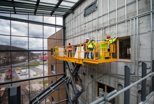 Los operarios deben asegurarse de mantener un apoyo firme y evitar inclinarse más allá de las barandillas.
