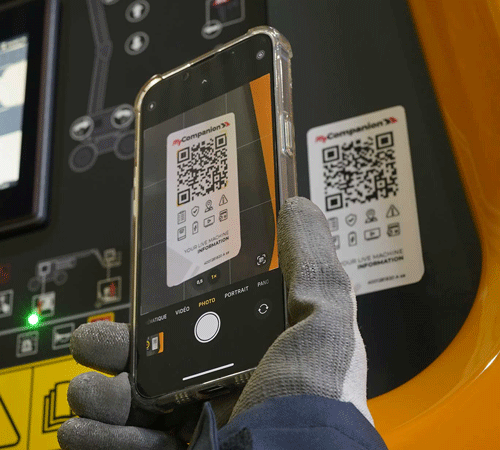 Los operadores de PEMP suelen pasar de una máquina a otra y deben adaptarse rápidamente a las especificidades de cada modelo. Las herramientas tecnológicas permiten un acceso inmediato a una documentación completa y específica para cada máquina. Con solo escanear un código QR, como el de MyCompanion, los operadores pueden consultar manuales de usuario, registros de mantenimiento, catálogos de piezas de repuesto y vídeos explicativos. Este acceso rápido a la información mejora la productividad y garantiza una mayor seguridad en la obra.